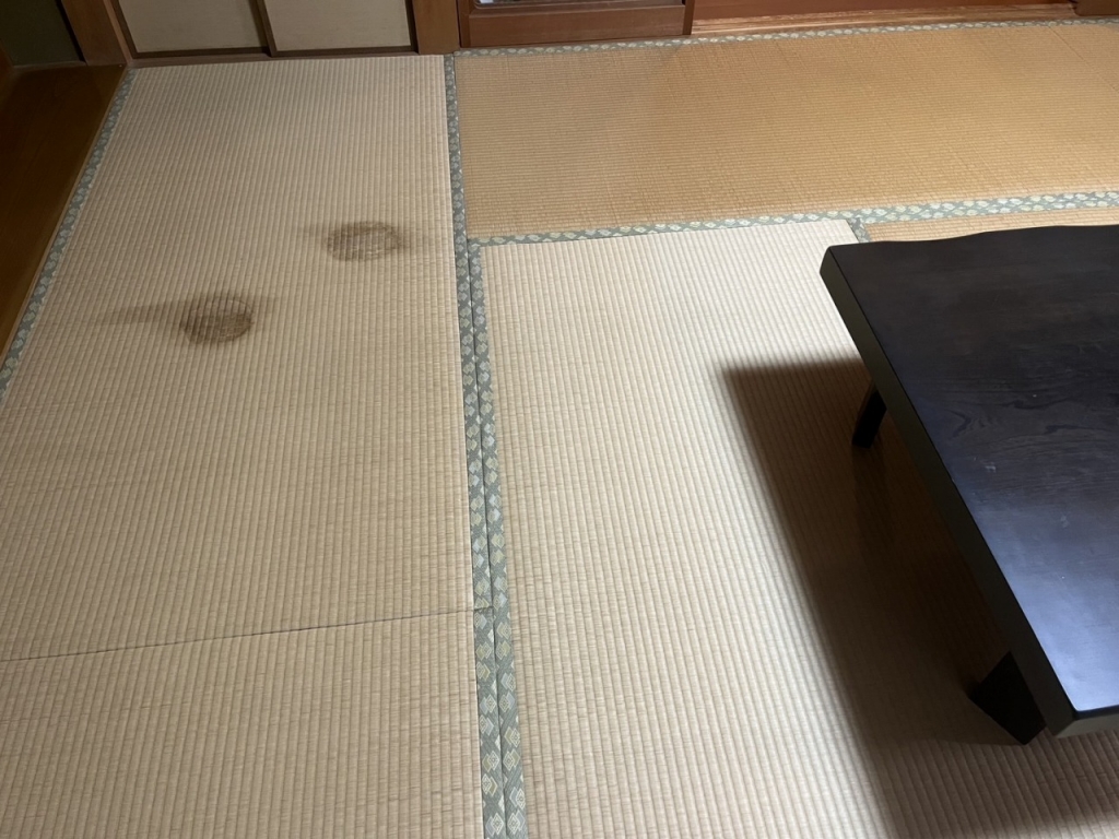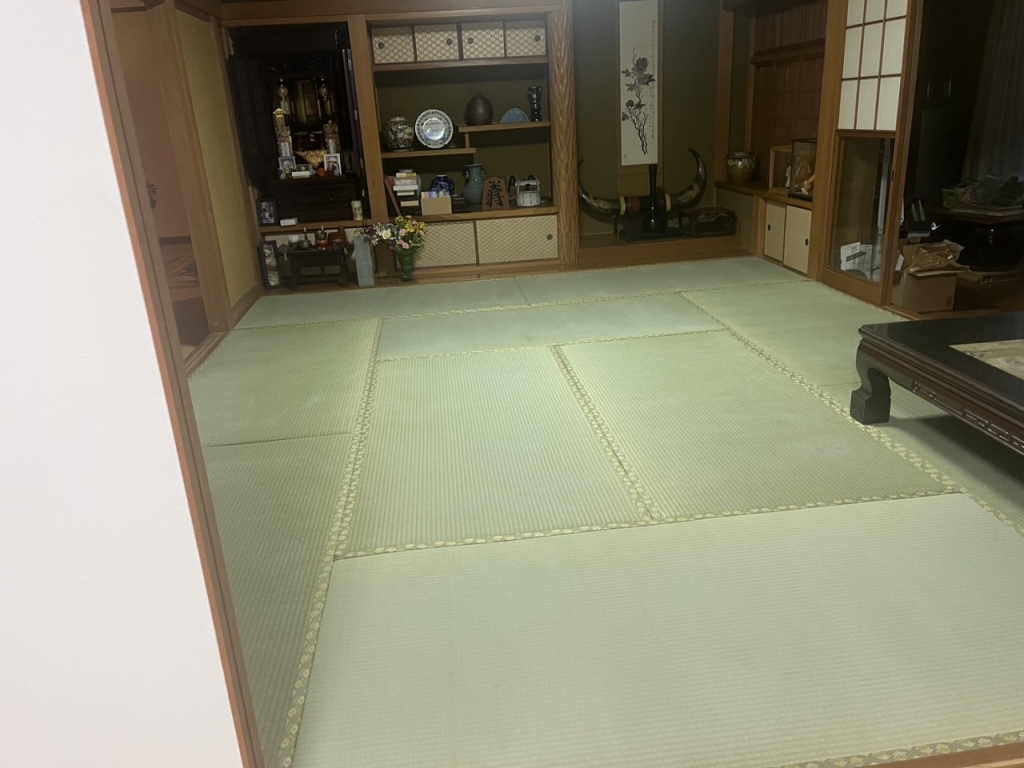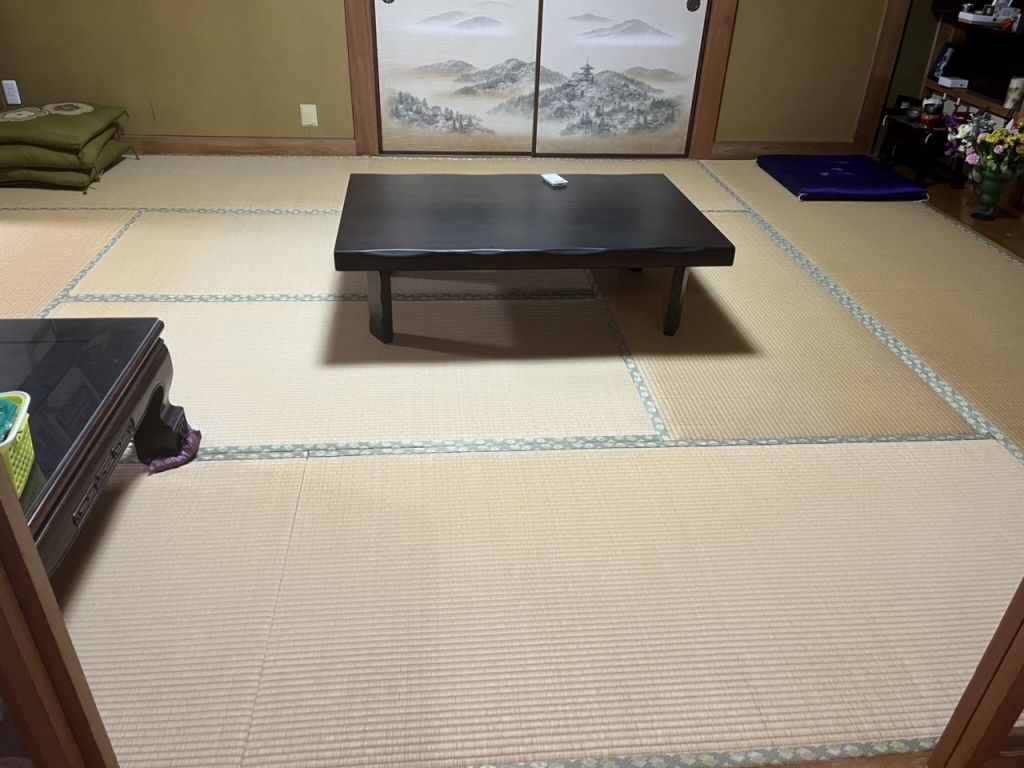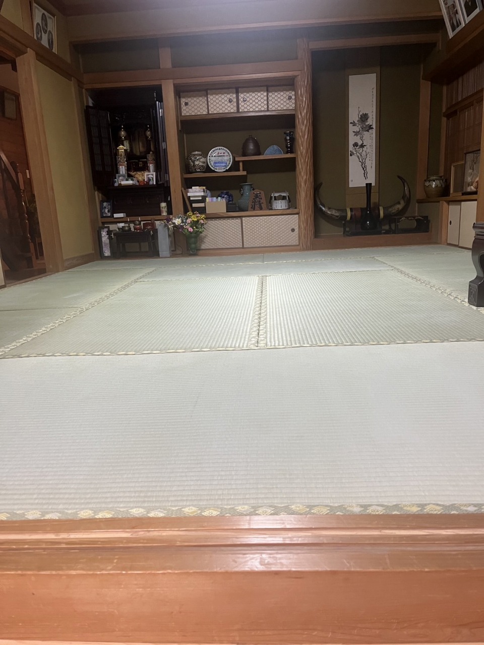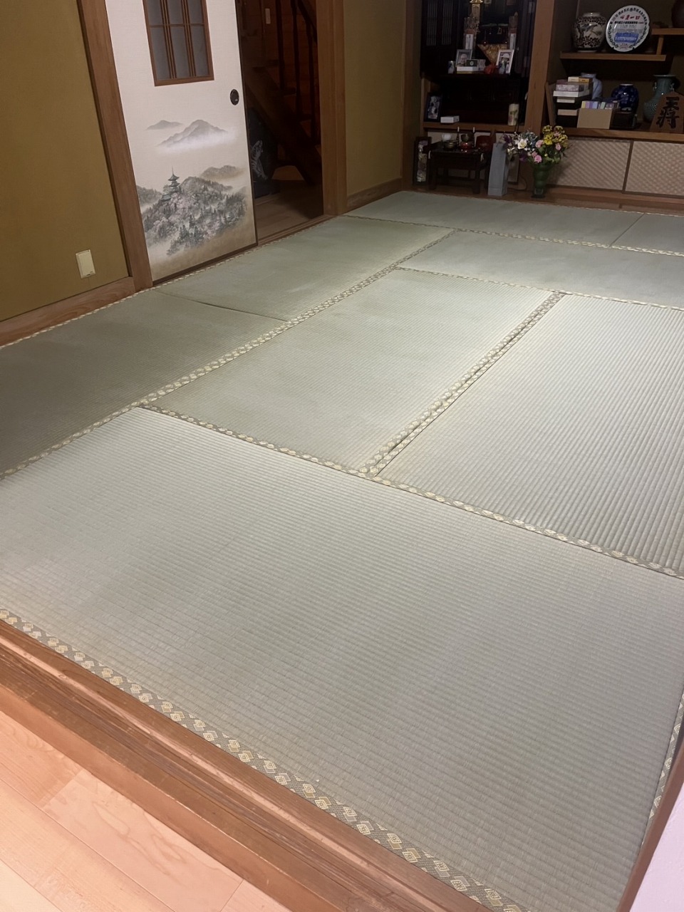 畳の表替えになります。畳にしみがあり張替をしました。 畳の構造は畳床(たたみどこ)、畳表(たたみおもて)、畳縁(たたみべり)を組み合わせたものとなっています。 今回の表替えは畳床は変えずに畳表、畳縁をかえました。 O様ありがとうございます。