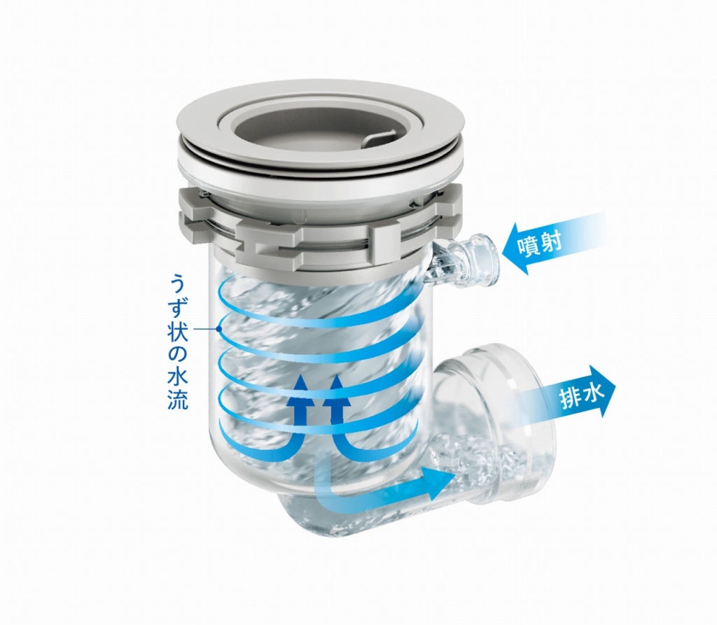 排水口の排水トラップ部に自動洗浄機能が搭載されました。
